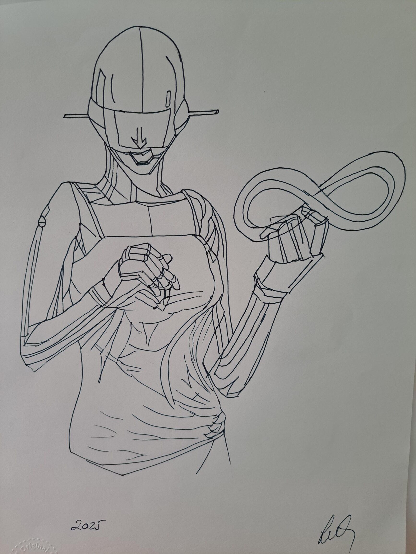 Ich möchte unverwechselbar bleiben, deswegen auch der Prägestempel links unten. Ich verwende Acryl und Aquarell, zeichne gerne mit Bleistiften unterschiedlicher Härte und kombiniere auch je nach Idee oder Thema. Wie sich die Welt durch Technik und KI verändern wird, bin ich sehr gespannt, deswegen ist es für mich wichtig, nur Unikate zu schaffen.